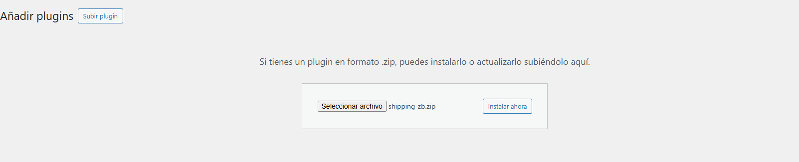 En WordPress: Plugins → Añadir nuevo → Subir plugin y selecciona el ZIP descargado.